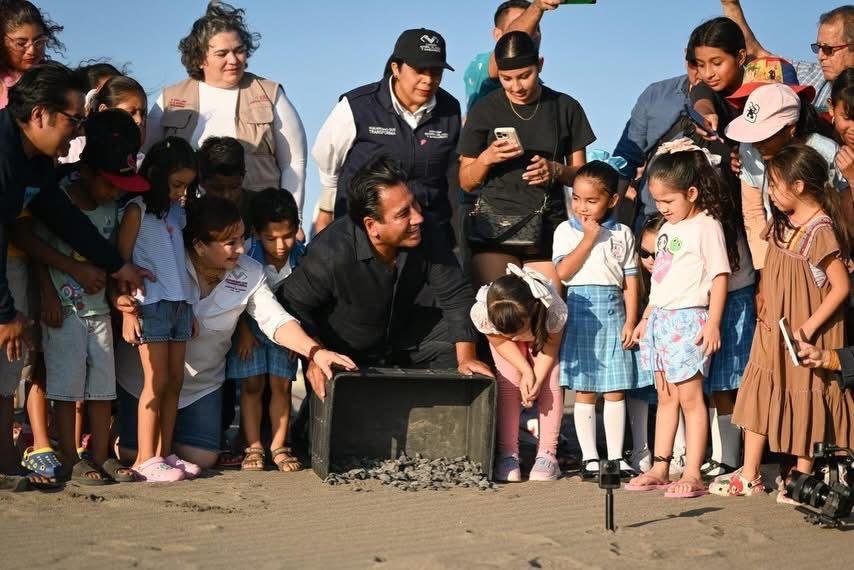 El gobernador Eduardo Ramírez Aguilar encabezó la liberación de crías de tortuga marina en la playa de Puerto Arista, en el municipio de Tonalá, donde refrendó el compromiso del gobierno de la Nueva ERA con el cuidado, la protección y la conservación de estas especies.