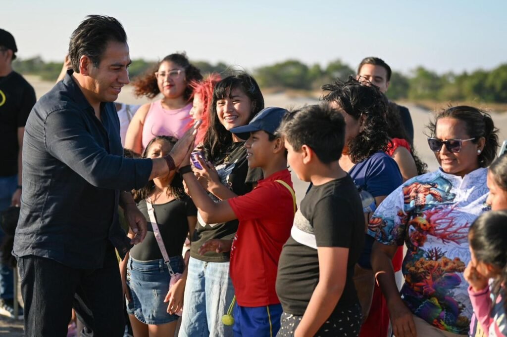 En el marco de esta actividad, el mandatario realizó un recorrido por el Campamento Tortuguero, durante el cual anunció que su administración fortalecerá de manera integral la infraestructura y el equipamiento del sitio, además de dotarlo de material didáctico.