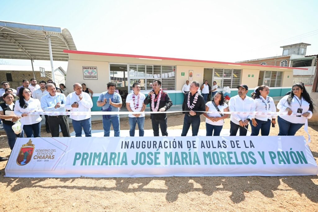 Durante esta gira, el gobernador también puso en marcha infraestructura educativa en el Colegio Nacional de Educación Profesional Técnica (Conalep) Plantel 22, donde se destinaron 7.2 millones de pesos en beneficio de 934 estudiantes. De igual forma, inauguró obras en la Escuela Primaria José María Morelos y Pavón, con una inversión de 5.3 millones de pesos que favorece a 312 alumnas y alumnos. En ese marco, reiteró que continuará fortaleciendo acciones en favor del sector educativo y de las niñas, niños y jóvenes de Chiapas.