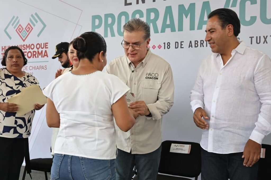 Durante la entrega de apoyos del programa Cuidar es Amar en Tuxtla Gutiérrez, el gobernador Eduardo Ramírez Aguilar destacó que el gobierno de la Nueva ERA impulsa políticas sensibles y humanistas orientadas a fortalecer el bienestar y mejorar las condiciones de vida de la población, especialmente de los sectores prioritarios.
