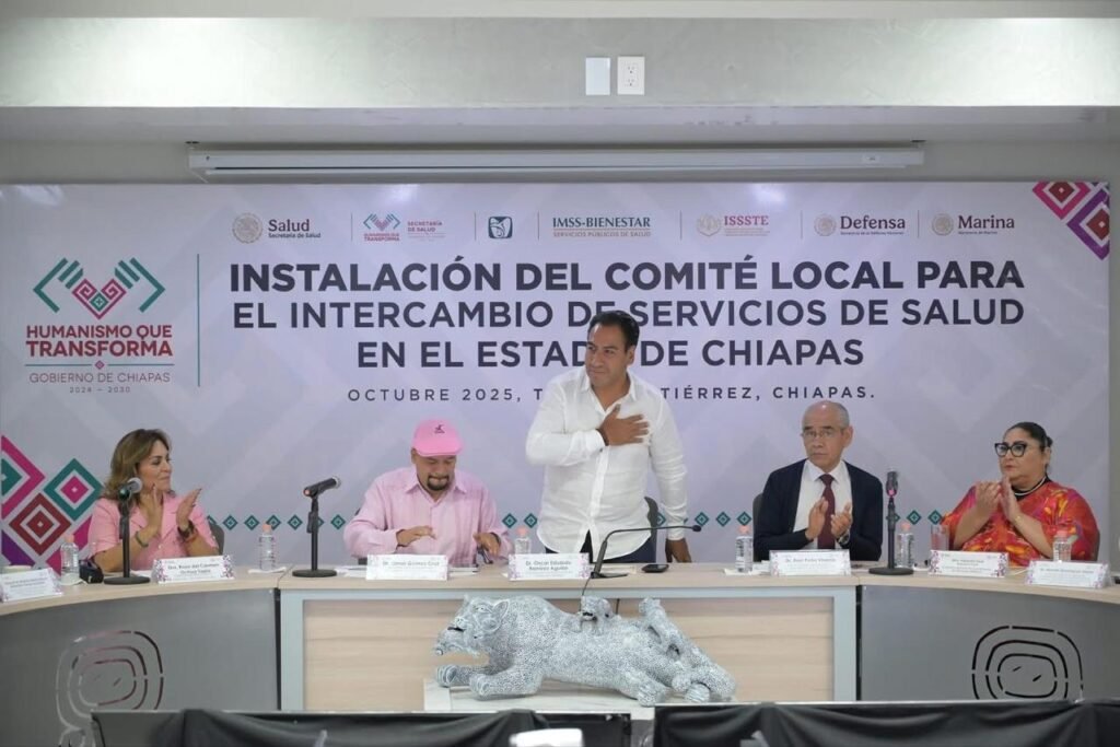 El gobernador Eduardo Ramírez Aguilar atestiguó la instalación del Comité Local para el Intercambio de Servicios de Salud en el Estado de Chiapas, donde reafirmó que el gobierno de la Nueva ERA es aliado de la política de salud que impulsa la presidenta Claudia Sheinbaum Pardo, al demostrar que esta estrategia es la mejor vía para garantizar el derecho de la población a servicios médicos dignos y de calidad, especialmente para los sectores más vulnerables.