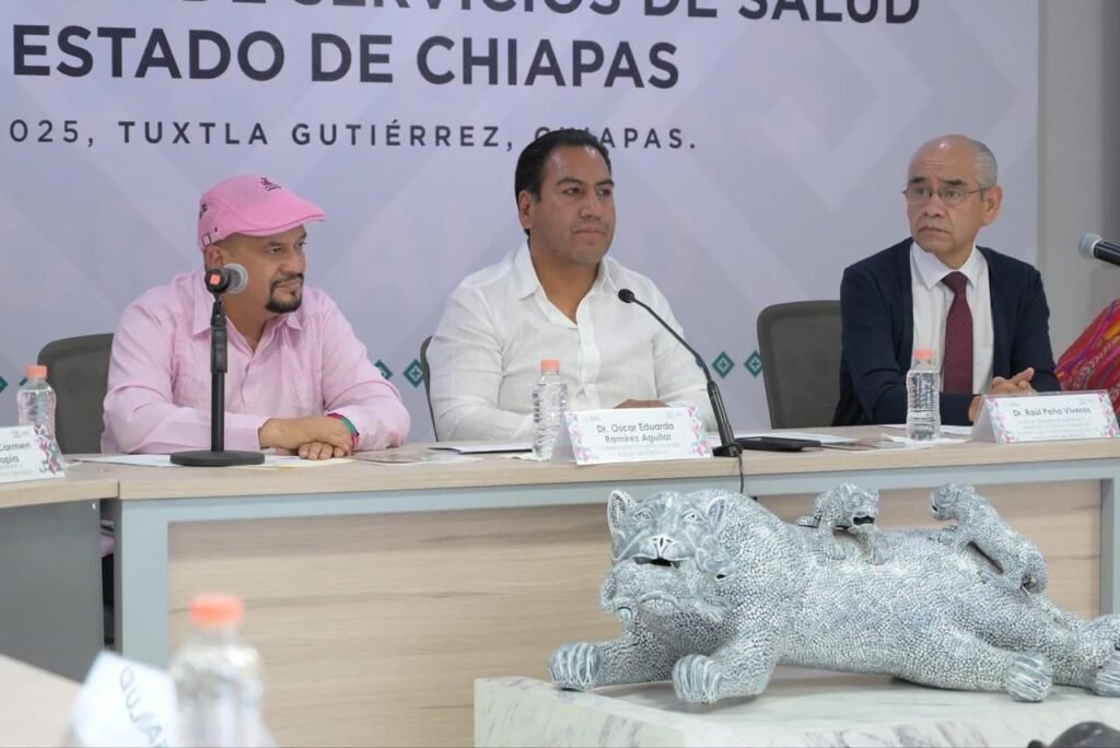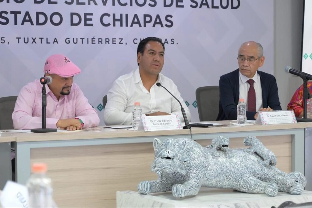 Acompañado del director general de Planeación y Desarrollo en Salud del Gobierno de México y presidente suplente del Comité Nacional para el Intercambio de Servicios, Raúl Peña Viveros, el mandatario destacó que este acto fortalece la coordinación y cooperación institucional para avanzar hacia la universalización de los servicios médicos en beneficio de las y los chiapanecos.