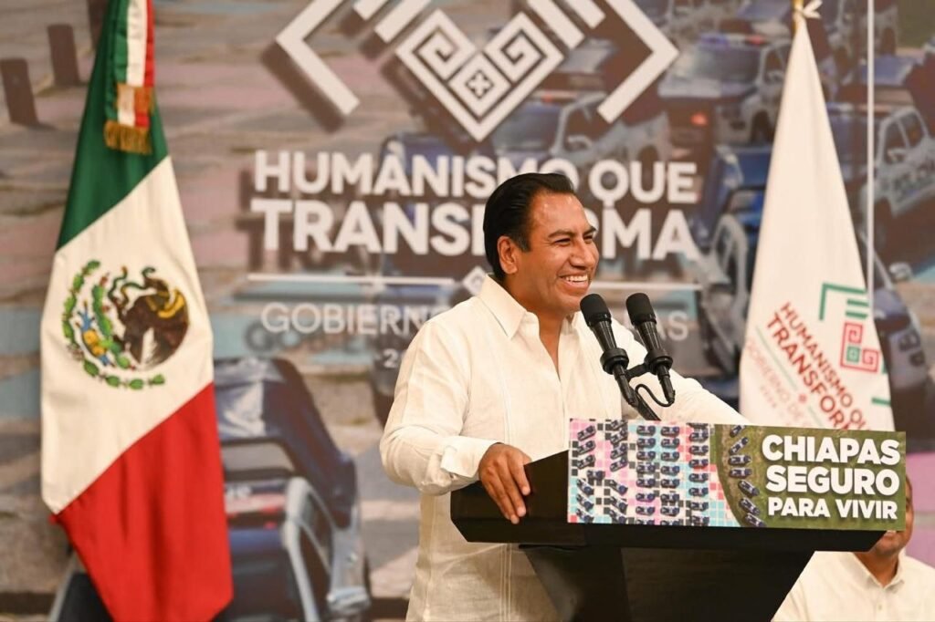 Durante la entrega de patrullas, equipamiento y uniformes a las corporaciones policiales de distintos ayuntamientos, el gobernador Eduardo Ramírez Aguilar destacó que estas acciones reafirman el compromiso del Gobierno de la Nueva ERA de fortalecer la seguridad en los municipios de Chiapas. Reconoció que los buenos resultados alcanzados se deben a la coordinación y cooperación establecida con las alcaldesas y los alcaldes, en favor de la paz y el Estado de Derecho.