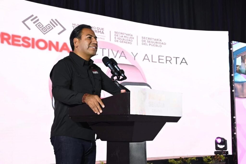 El gobernador Eduardo Ramírez Aguilar encabezó el arranque del programa Mujer Segura: Presiona, Activa, Alerta, que dota a mujeres de relojes inteligentes conectados permanentemente al C5, lo que permitirá brindar atención inmediata ante situaciones de riesgo. Destacó que Chiapas es el primer estado del país y de América en implementar una estrategia de este tipo, y subrayó que el Gobierno de la Nueva ERA impulsa acciones que fomentan la participación social para construir un Chiapas libre de violencias contra niñas, adolescentes y mujeres.