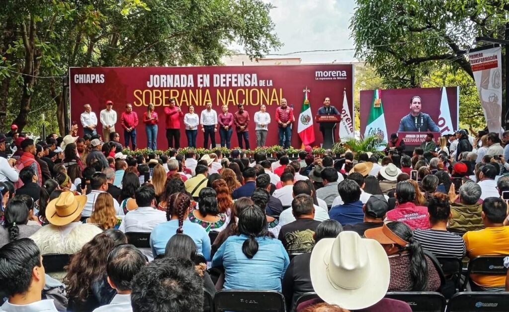 “Hay quienes le apuestan a que nos vamos a dividir, por eso yo les pedí a las dirigencias de nuestra coalición que estemos muy unidos, el objetivo es México, no hay que perder esa brújula, el objetivo es Chiapas, el objetivo es la paz, el objetivo es la prosperidad compartida y el objetivo es la defensa de la soberanía”, manifestó ante la militancia de los partidos políticos de la coalición, quienes, en unidad, participaron en esta Jornada en Defensa de la Soberanía Nacional.
