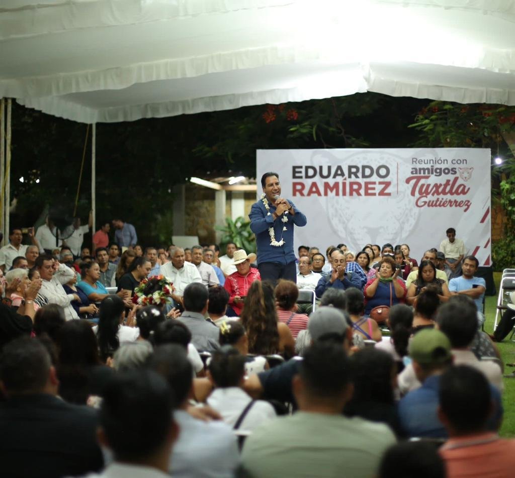 A fin de gestionar lo que esté a su alcance y legislar lo competente, el líder de la bancada de Movimiento Regeneración Nacional (Morena) en el Senado de la República, Eduardo Ramírez Aguilar, asistió a un encuentro ciudadano con habitantes de distintos barrios y colonias de la ciudad de Tuxtla Gutiérrez en Chiapas.