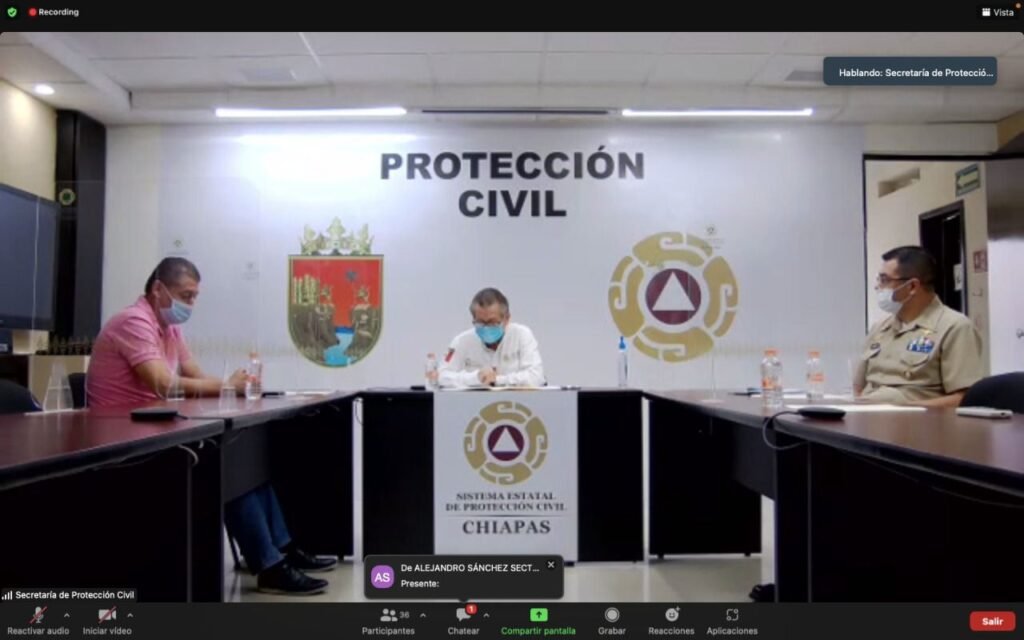 El secretario de Protección Civil, Luis Manuel García Moreno, informa diariamente en la Mesa Estatal de Seguridad que encabeza el gobernador Rutilio Escandón Cadenas, las acciones de prevención y atención que realiza el Sistema Estatal de Protección Civil para la salvaguarda de la población, los bienes y el entorno.