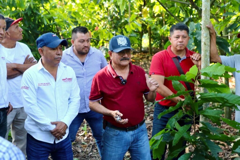 27 de enero 2026, Tapachula, Chiapas.- El Ayuntamiento de Tapachula, a través de la Secretaría de Desarrollo Rural y Fomento de Agronegocios y su Dirección de Capacitación y Extensionismo Rural, inició el programa de capacitaciones para productores beneficiados con plantaciones de alto rendimiento de cacao tapachulteco.