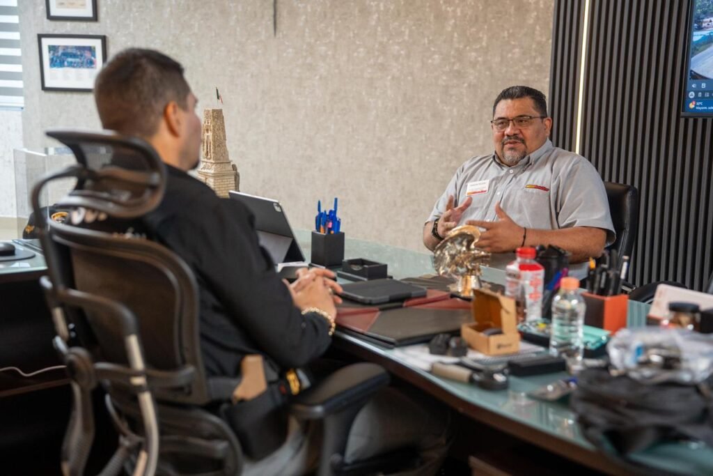 Tuxtla Gutiérrez, Chiapas; 11 de marzo de 2026.- El secretario de Seguridad del Pueblo, Óscar Alberto Aparicio Avedaño, sostuvo una reunión de trabajo con el gerente de Prevención de Pérdidas de AutoZone, Ramón Rejón Jiménez, con el objetivo de fortalecer los lazos de comunicación y coordinación en las acciones operativas de prevención y atención de conductas delictivas.