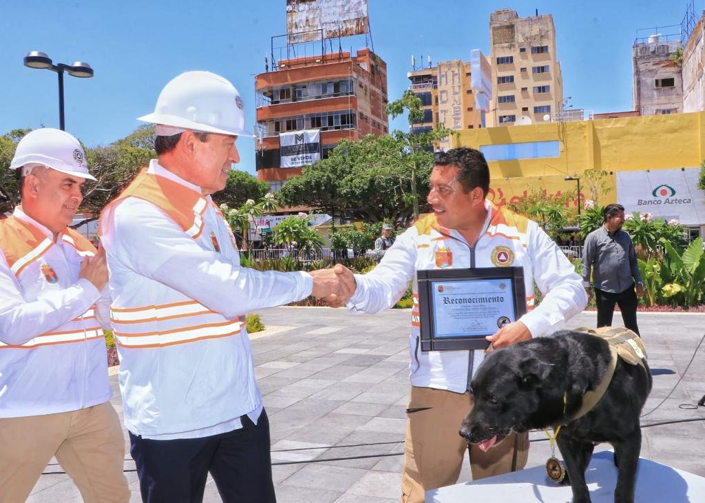 En este marco, el mandatario rindió honores de jubilación al canino Sismo, de 13 años de edad y que, durante más de 10 años de servicio, participó en múltiples labores en la búsqueda de personas, y que ahora estará retirado y muy bien cuidado por la Secretaría de Protección Civil del estado de Chiapas.