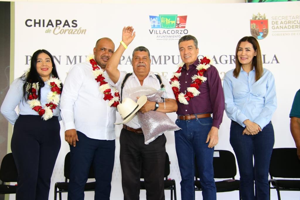 El alcalde de Villa Corzo, Robertony Orozco Aguilar, reconoció la voluntad política del gobernador Rutilio Escandón al impulsar acciones a favor del desarrollo del campo en este municipio, toda vez que, gracias a su gestión, se ha logrado incrementar de 20 a 35 toneladas de semillas de frijol para la siembra en mil 200 hectáreas, en beneficio de 5 mil productores, a espera de que para el 2024 se aumente a 10 mil campesinos atendidos.
