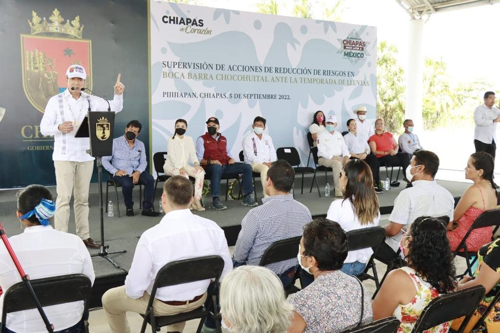 El secretario de Protección Civil, Luis Manuel García Moreno, informó que cumpliendo las instrucciones de privilegiar el trabajo conjunto entre autoridades y la comunidad, hoy se supervisan las acciones de reducción de riesgo implementadas en Bocabarra Chocohuital, las cuales están dando resultados favorables en la prevención de inundaciones en zonas que históricamente lo padecían. Detalló que la apertura de la bocabarra restablece un ecosistema para la pesca y los recorridos turísticos, lo que contribuye a la economía local.