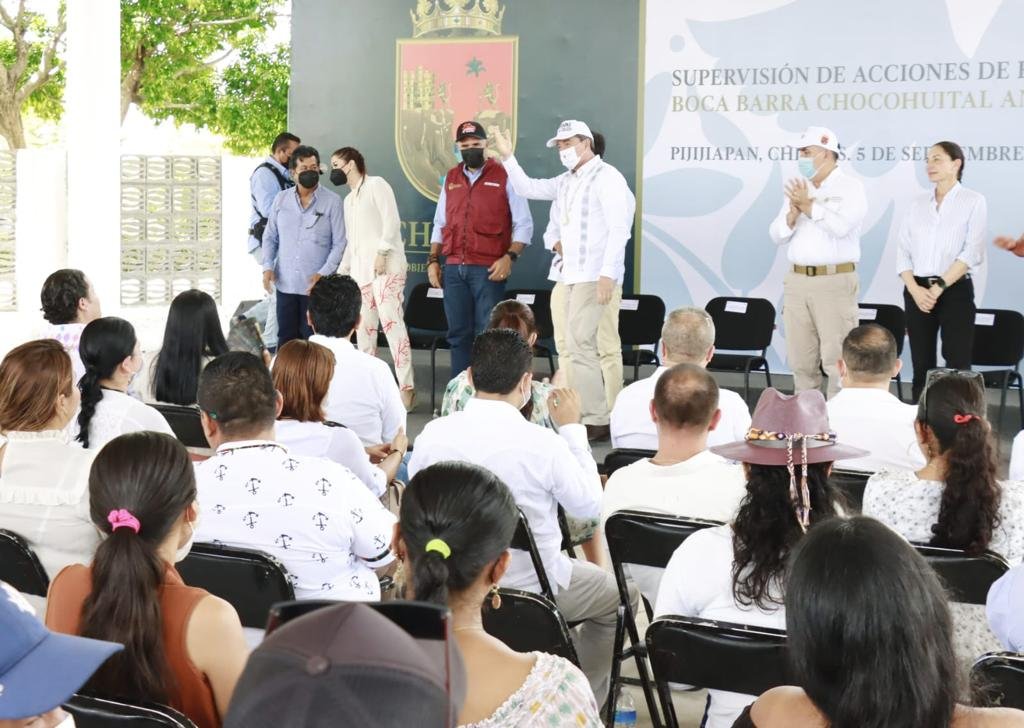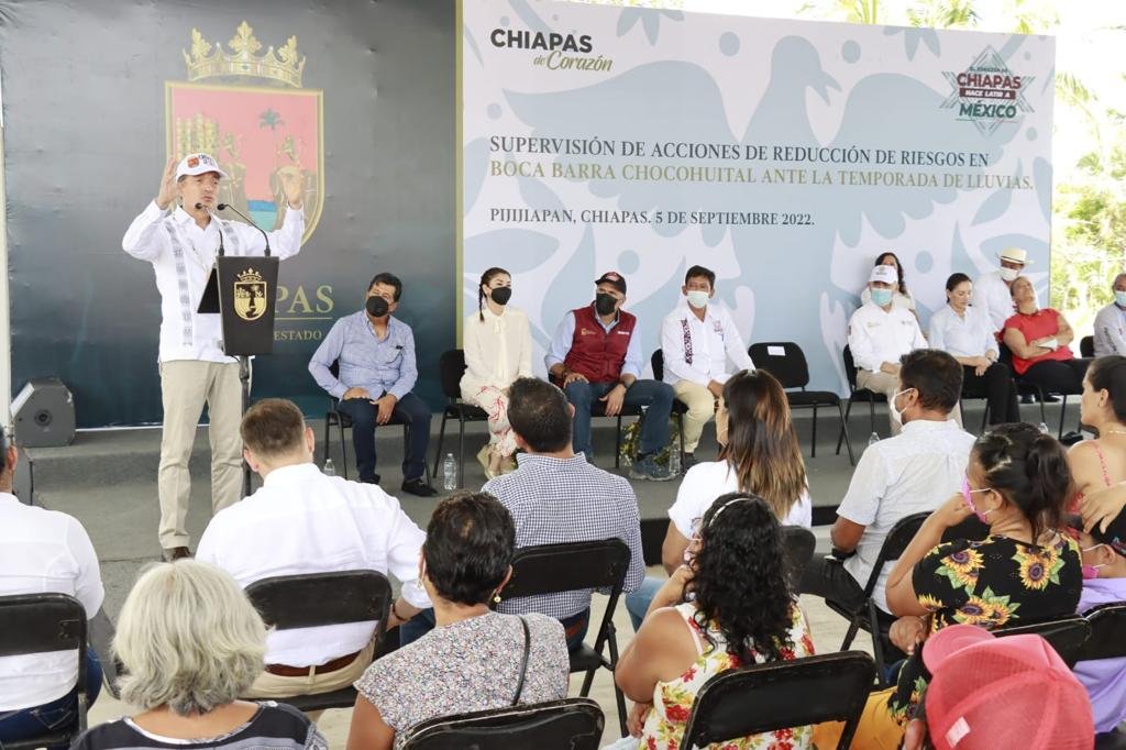 Finalmente, el presidente municipal de Pijijiapan, Carlos Alberto Albores Lima, detalló que en esta zona se realizaron acciones de reducción de riesgos como: desazolve, reforzamiento de bordos, protección de caminos y colocación de nuevas alcantarillas. Asimismo, agradeció el apoyo del Gobierno de Chiapas para embellecer este destino turístico, el cual, dijo, trae consigo desarrollo económico y bienestar a las familias.