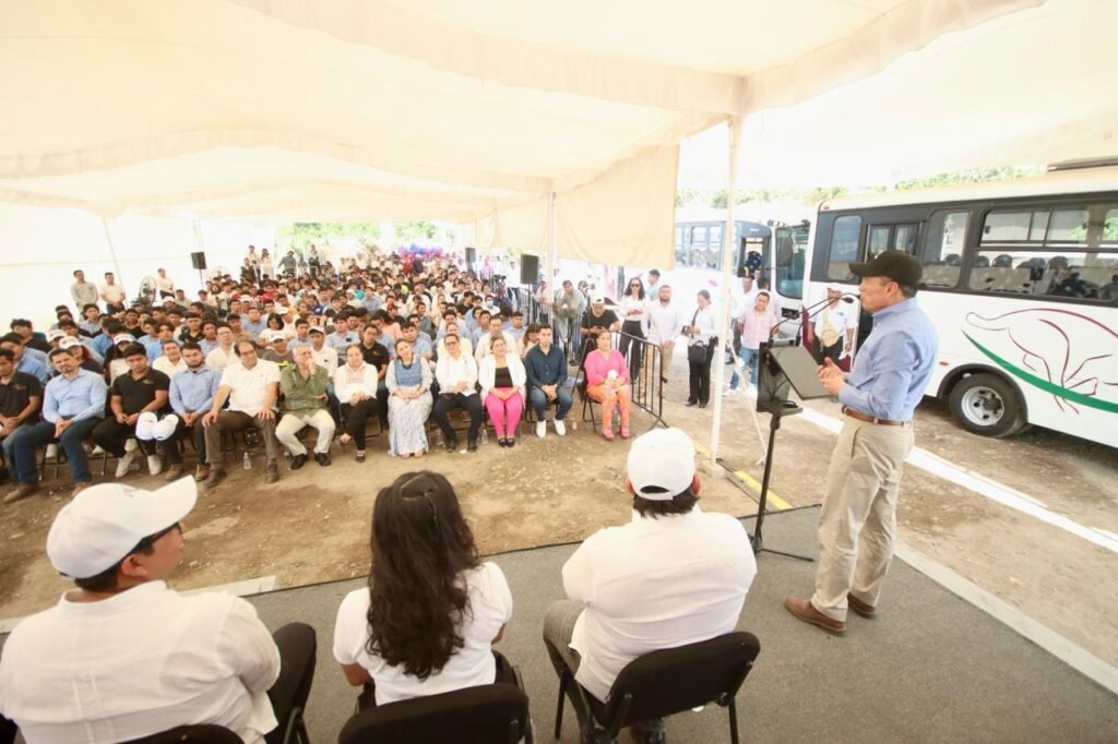 En este sentido, el mandatario destacó que con estas obras viales prioritarias se contribuye a la movilidad y la seguridad peatonal de la comunidad estudiantil y docente; con el equipamiento se fortalecen integralmente las actividades teórico-prácticas, mientras que con la entrega de los autobuses se contribuye a la economía de las y los estudiantes.