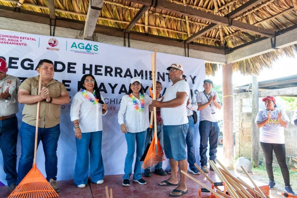 Entrega Sarita Barrera herramientas en jornada de limpieza de playas en Mazatán
