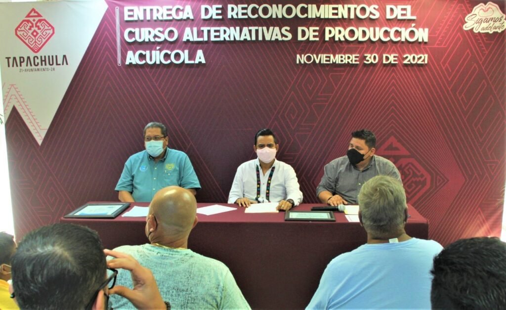 Por su parte, el secretario de Desarrollo Rural y Fomento de Agronegocios, Josué Porfirio Cárdenas Molina, agradeció el respaldo de la alcaldesa Rosa Irene Urbina Castañeda y destacó que el curso de alternativas acuícolas tuvo el objetivo de enseñar a los pescadores a aprovechar los recursos naturales de los ecosistemas de manglar y del mar a través de la reconversión de pesca intensiva a una producción sustentable de acuicultura.