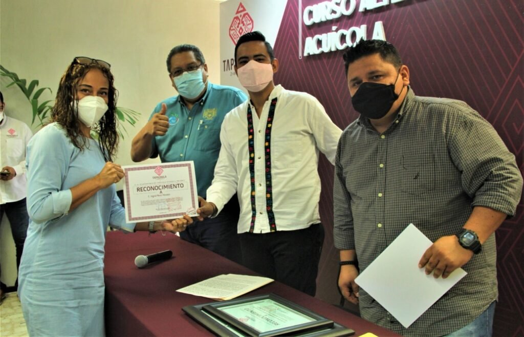 “La sinergia entre el gobierno, la academia y los productores es una garantía de buenos resultados para lograr la reactivación y el crecimiento económico; por ello felicito a todos los que hicieron posible este exitoso curso que traerá beneficios no sólo a quienes lo tomaron sino a todos los tapachultecos”, asentó Hintze Moreno.