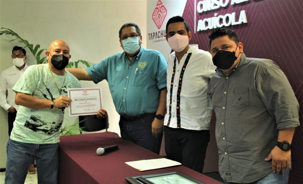 Al dar la bienvenida a los pescadores que culminaron el curso, el regidor Erik Hintze Moreno, en representación de la presidenta municipal Rosa Irene Urbina Castañeda, refrendó el compromiso del Ayuntamiento 2021-2024 de ampliar las oportunidades de desarrollo en la zona rural, incentivando y apoyando a los productores, conforme a las políticas públicas de los gobiernos presididos por el Presidente Andrés Manuel López Obrador y el gobernador Rutilio Escandón Cadenas.