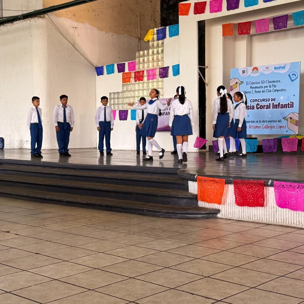 Tapachula vivió este fin de semana una emotiva jornada cultural en la que niñas y niños de más de doce instituciones educativas de la región unieron sus voces para interpretar los poemas de Artemio Gallegos, uno de los grandes referentes de la literatura chiapaneca y premio Chiapas, durante la Segunda Edición del Concurso de Poesía Coral que lleva su nombre.