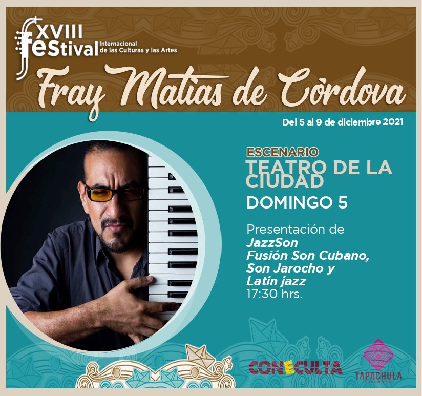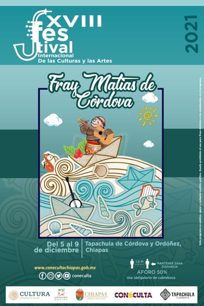 Tapachula, Chiapas.- El Festival Internacional de las Culturas y las Artes “Fray Matías de Córdova” inicia este domingo con la presentación del artista Fernando Delgadillo en el Teatro de la Ciudad y otras actividades culturales en el parque Bicentenario, Museo de Tapachula, Centro Cultural del Soconusco y el ejido El Edén.