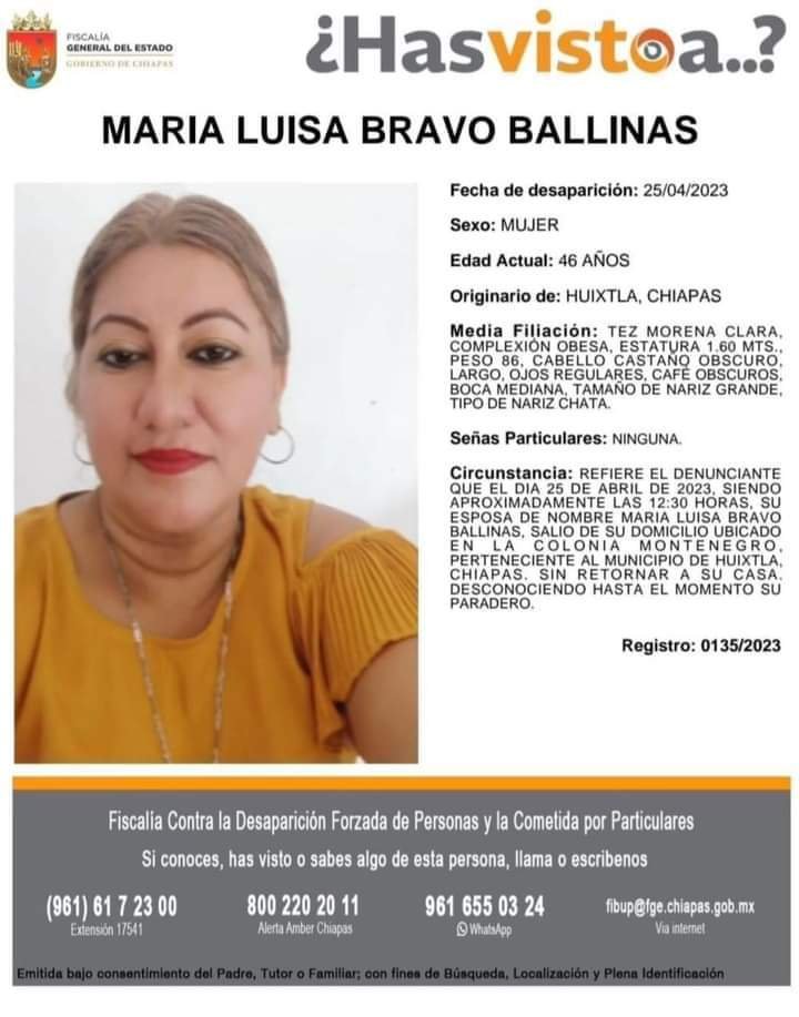 Habitantes de las colonias Montenegro y Aquiles Serdán del municipio de Huixtla, establecieron un bloqueo en la carretera federal número 200, en ambos sentidos para pedir que se agilice la búsqueda de María Luisa Bravo Ballinas, de 46 años de edad, desaparecida el 25 de abril.