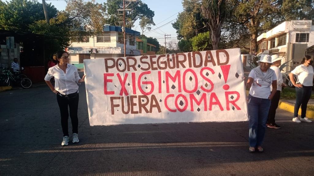 Tapachula Chiapas 07 de enero de 2023.- Un grupo de vecinos de colonias y fraccionamientos de la ciudad de Tapachula se manifestaron en céntricas calles para exigir la salida de la ciudad las instalaciones de la COMAR, esto por la desestabilización social que provocan con la aglomeración de miles de migrantes que deambulan en la periferia de colonias, ante la desorganización que personal de la COMAR y del Instituto Nacional de Migración mantienen para atender a los migrantes en busca de regularizar sus estancia en territorio mexicano.
