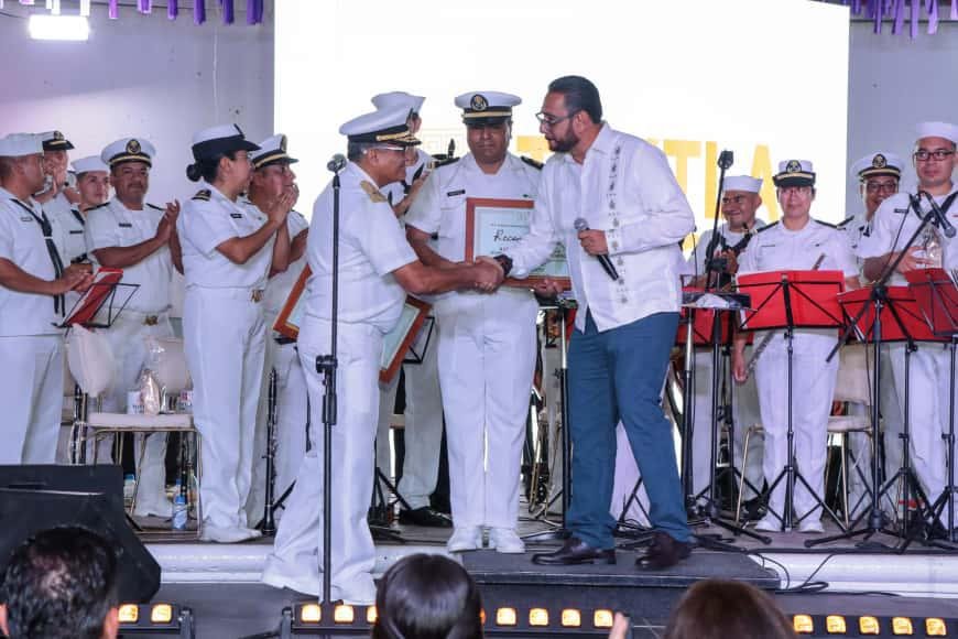 Gamboa Altúzar expresó que esta noche quedará en el recuerdo de todos los habitantes al ser un momento histórico; la Banda Sinfónica y Coro de la Secretaría de Marina Armada de México enaltece con su música el espíritu naval.