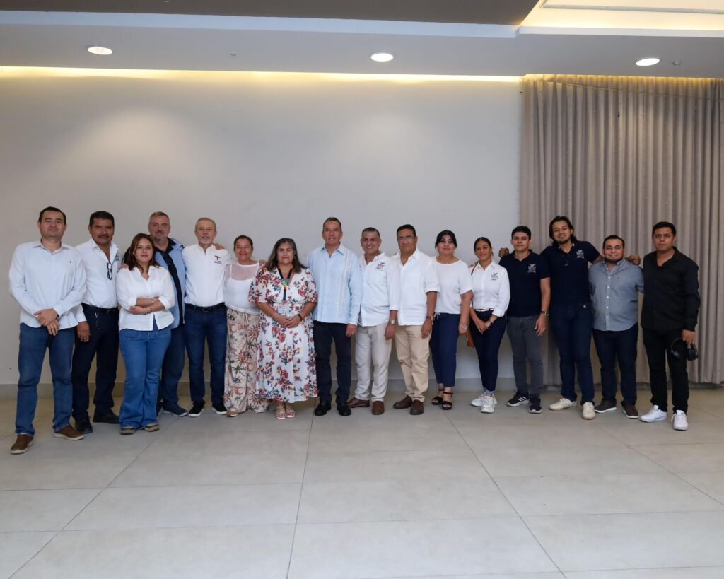 El presidente municipal de Tapachula, Yamil Melgar Bravo, felicitó a Emilio Barrios Solano por su nueva encomienda y refrendó su apoyo para que la EFT 2026, siga fortaleciéndose como la feria más importante de la región.