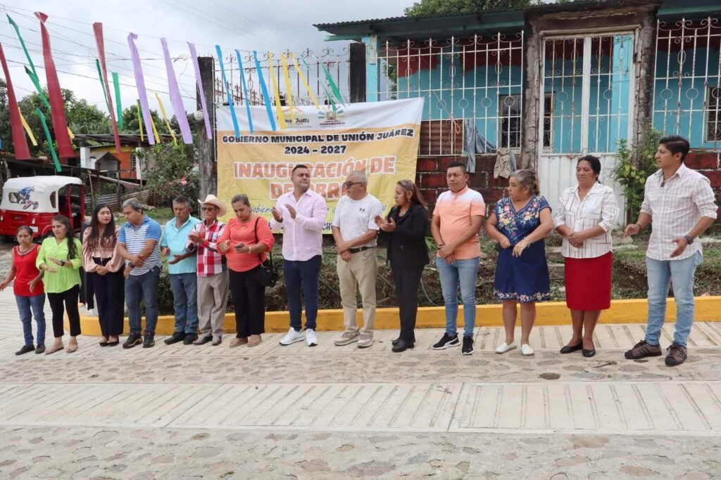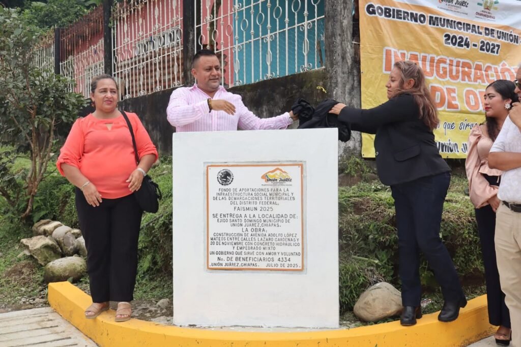 Con el firme compromiso de mejorar la infraestructura urbana y elevar la calidad de vida de las familias, el Ayuntamiento de Unión Juárez llevó a cabo la inauguración de la obra “Construcción de la Avenida Adolfo López Mateos, entre calles Lázaro Cárdenas y 20 de Noviembre, con concreto hidráulico y empedrado mixto” en el ejido Santo Domingo.