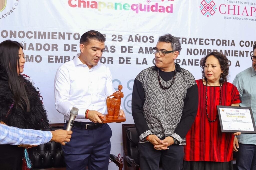 Como parte del evento protocolario, el Congreso Estatal entregó un reconocimiento al artesano Arturo Cáceres por su trabajo con el ámbar durante 25 años; asimismo, fue nombrado Embajador de la Chiapanequidad, por su trabajo en la preservación de la cultura y tradiciones.