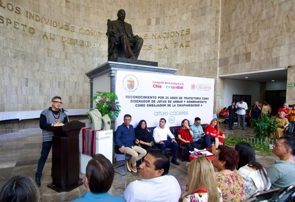 Al respecto, Selene Josefina Sánchez Cruz destacó que Arturo Cáceres, arquitecto por la UNAM, ha puesto en alto el nombre de Chiapas por su vocación al servicio de la cultura y por su destacada labor con el ámbar.