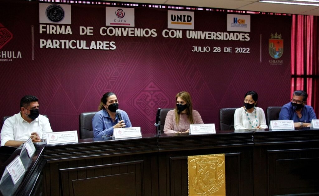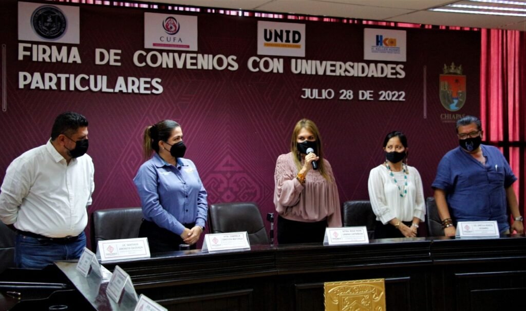 Tapachula, Chiapas.- El Ayuntamiento de Tapachula firmó convenios de colaboración con universidades privadas que permitirá contar con mayores y mejores oportunidades de acceso de la población a los programas de estudio mediante el otorgamiento de becas y capacitación.