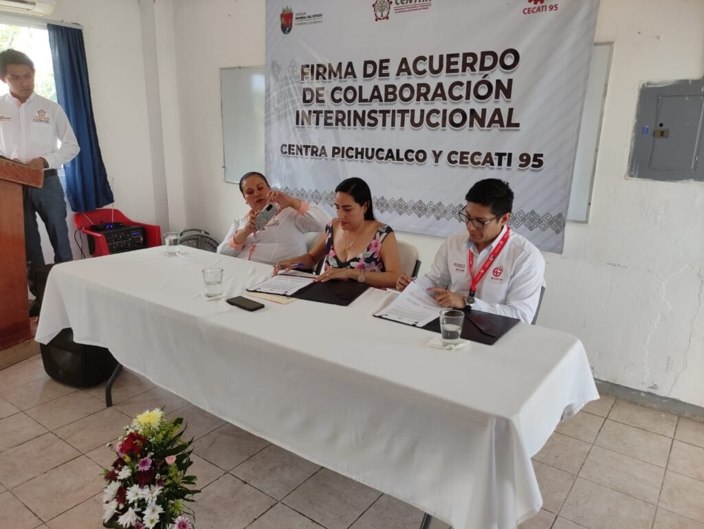 Tuxtla Gutiérrez, Chiapas; 26 de junio 2023.- La Fiscalía General del Estado (FGE) a través del Centro para la Prevención y Tratamiento en Adicciones (CENTRA) signó convenio de colaboración con el Centro de Capacitación para el Trabajo Industrial (CECATI) 95 de Pichucalco.