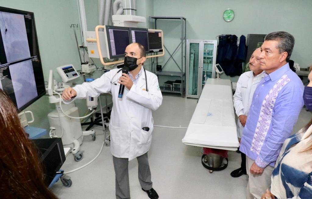 “Me da gusto constatar la instalación de esta unidad médica especializada de hemodinamia, la cual cuenta con insumos, medicamentos y un esquema avanzado y moderno para la atención del corazón, sin llegar a una operación a corazón abierto”, señaló al destacar que con esta obra, junto con la unidad de hemodiálisis, el servicio de resonancia magnética y terapia intensiva, se completa el círculo para el cuidado de la salud en Tapachula.