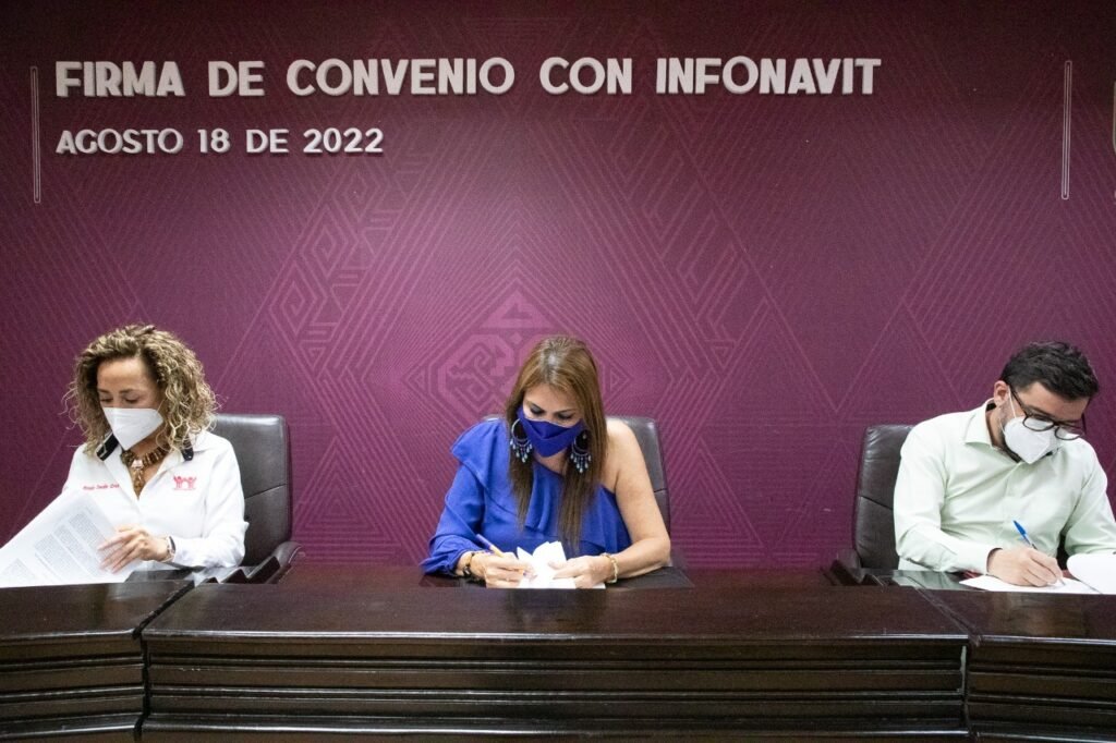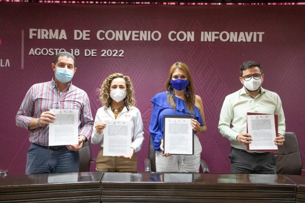 Tapachula, Chiapas.- La presidenta municipal de Tapachula, Rosa Irene Urbina Castañeda, el director general del Registro Único de Vivienda de INFONAVIT, José Gerardo Cornejo Niño, la delegada en Chiapas, Rocío Terán Cruz y el presidente de CANADEVI Chiapas, Luis Ernesto Sauza Gutierrez firmaron un convenio de colaboración que permitirá el acceso al crédito del programa ConstruYO para atender a derechohabientes en Tapachula, lo que permitirá facilitar la auto construcción y otras alternativas con desarrolladores.