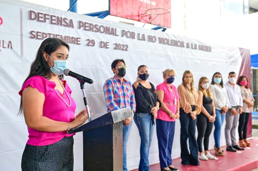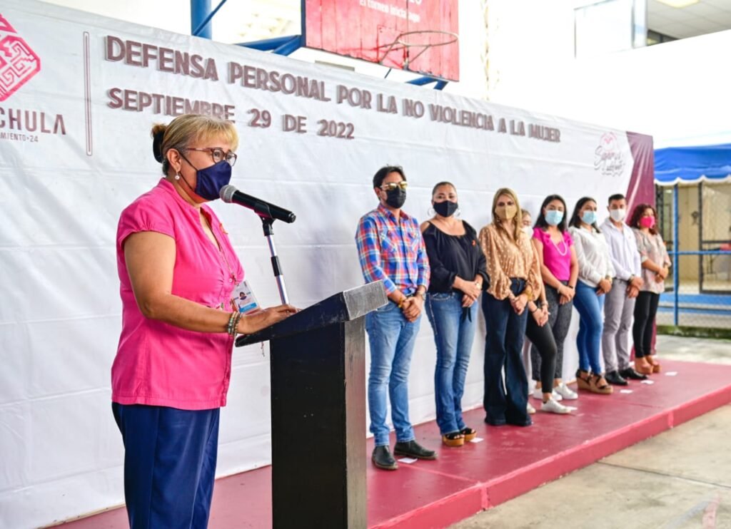 Acompañada de la regidora Gladiola Soto Soto, y la consejera jurídica, Charito Lázaro Sánchez, encargada de la Brigada Rosa, Urbina Castañeda entregó un reconocimiento y apoyos a la joven deportista tapachulteca, Andrea Gómez Salas, quien representará a México en el Street Child World Cup 2022, a realizarse en la ciudad de Doha, Qatar, del 5 al 16 de octubre próximo.