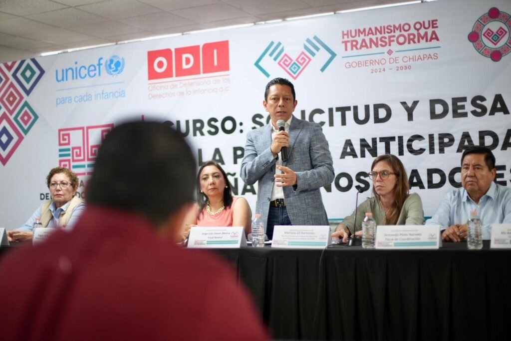 En su intervención, el representante de UNICEF, Edgar Arturo Olvera Canche, reconoció a la Fiscalía de Chiapas por ser la pionera en la realización de este curso y agregó que el UNICEF continuará siendo aliada de estas acciones en coordinación con la Oficina de la Defensoría de los Derechos de la Infancia (ODI).