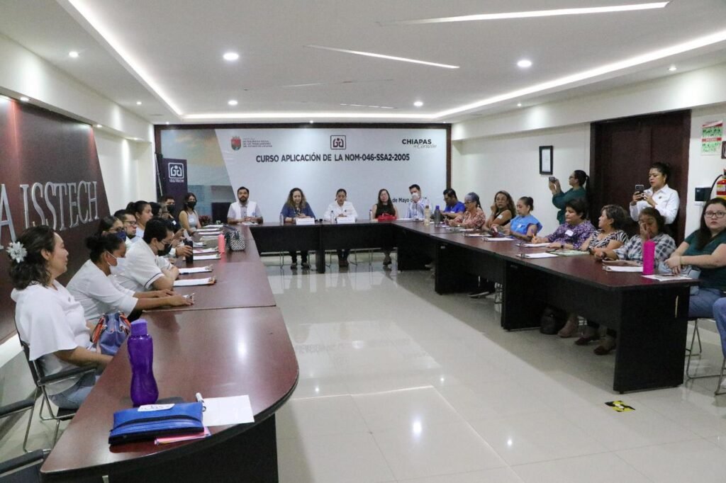 En el primer curso de capacitación estuvieron presentes la directora de Salud Pública y la subdirectora de Salud de la Mujer de la Secretaría de Salud del estado, Leticia Jarquin Estrada y María Dolores Maya Ríos, respectivamente; así como la subdirectora general del Isstech, María de los Ángeles Camacho Valle.