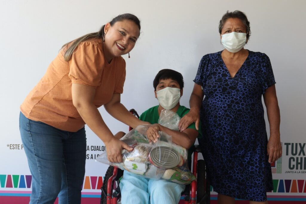 Karla del Toro junto a su equipo de trabajo realizan la entrega de estos insumos de manera directa, dijo que estos alimentos representan una ayuda para las familias y añadió que garantizar la seguridad alimentaria de la población vulnerable es una de las principales indicaciones del gobernador del estado Rutilio Escandón Cadenas.