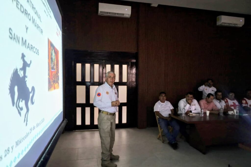 Respaldado por autoridades e instituciones de seguridad y rescate federales, estatales y municipales, acompañado por el Jefe de la Jurisdicción Sanitaria No. VII Jaime Ordóñez Granja, el presidente encabezó la Segunda Sesión Ordinaria del programa operativo Semana Santa y fiesta patronal de San Pedro Mártir y San Marcos 2026; además, agradeció el apoyo de las Fuerzas Armadas, de la Secretaría de Seguridad del Pueblo, de los cuerpos de emergencia, de la Secretaría de Salud, entre otras instituciones, por sumar esfuerzos en las estrategias de reducción de riesgos.