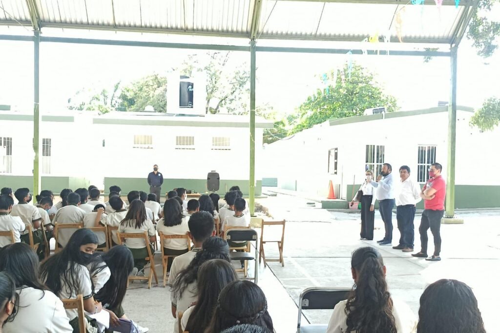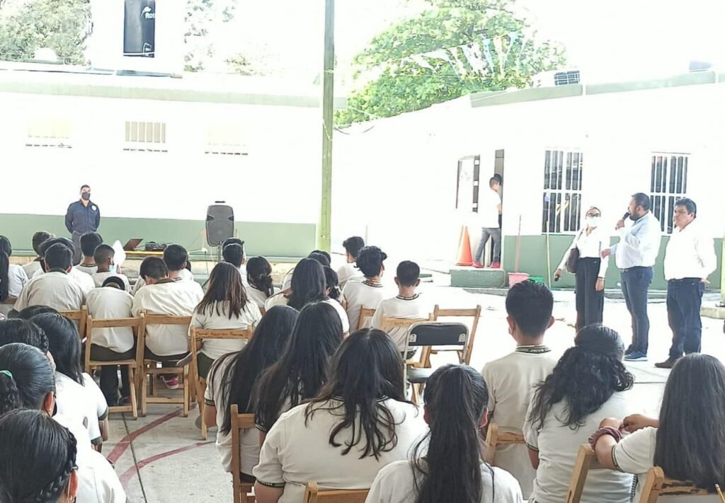 Tuxtla Gutiérrez, Chiapas.- Elementos de la Secretaría de Seguridad y Protección Ciudadana (SSyPC), adscritos a la Policía Cibernética y Unidad de Prevención del Delito y Política Criminal, impartieron pláticas en materia de prevención de ciberdelitos y cultura de la denuncia a alumnos y alumnas de la Escuela Secundaria “José Manuel Velasco Siles” en Tuxtla Gutiérrez, con el objetivo de brindarles herramientas de autocuidado en el uso de internet y redes sociales.