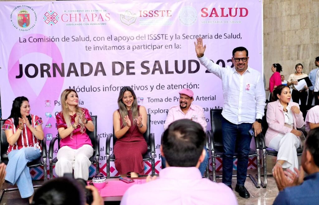 Tuxtla Gutiérrez, Chiapas; 14 de octubre de 2025.- En Conmemoración del Día Mundial Contra el Cáncer de Mama, el Congreso del Estado fue la sede de la “Jornada de Salud” realizada por la diputada Faride Abud García, presidenta de la Comisión de Salud, en coordinación con la Secretaría de Salud, ISSSTE e IMSS Bienestar.