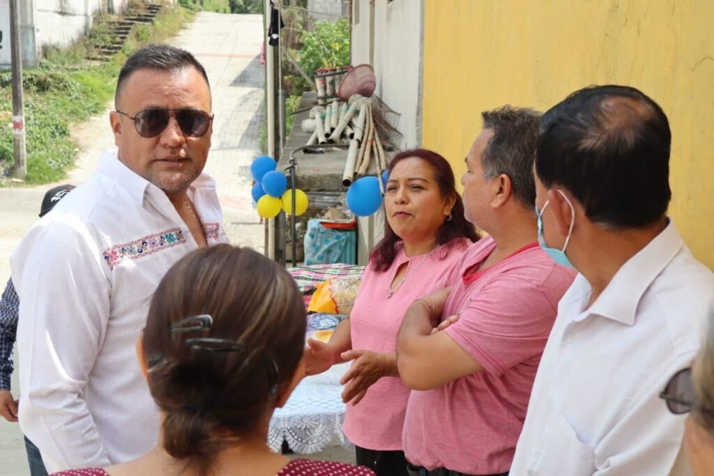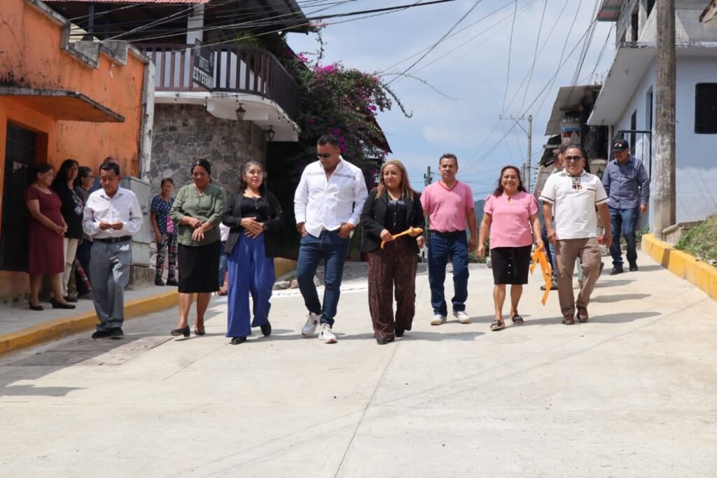 El alcalde Fabián Barrios de León inaugura pavimentación de calle con concreto hidráulico, rehabilitación de la red de drenaje sanitario, introducción de agua potable y suministro de tubería para dren pluvial en cabecera municipal.