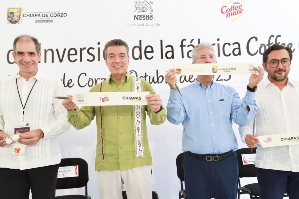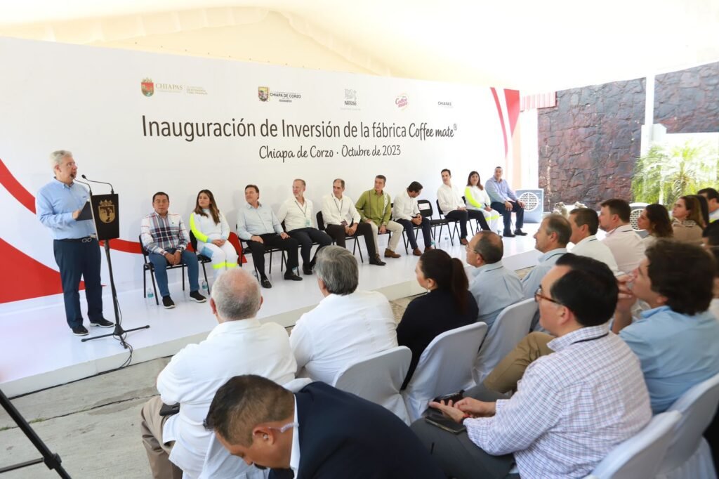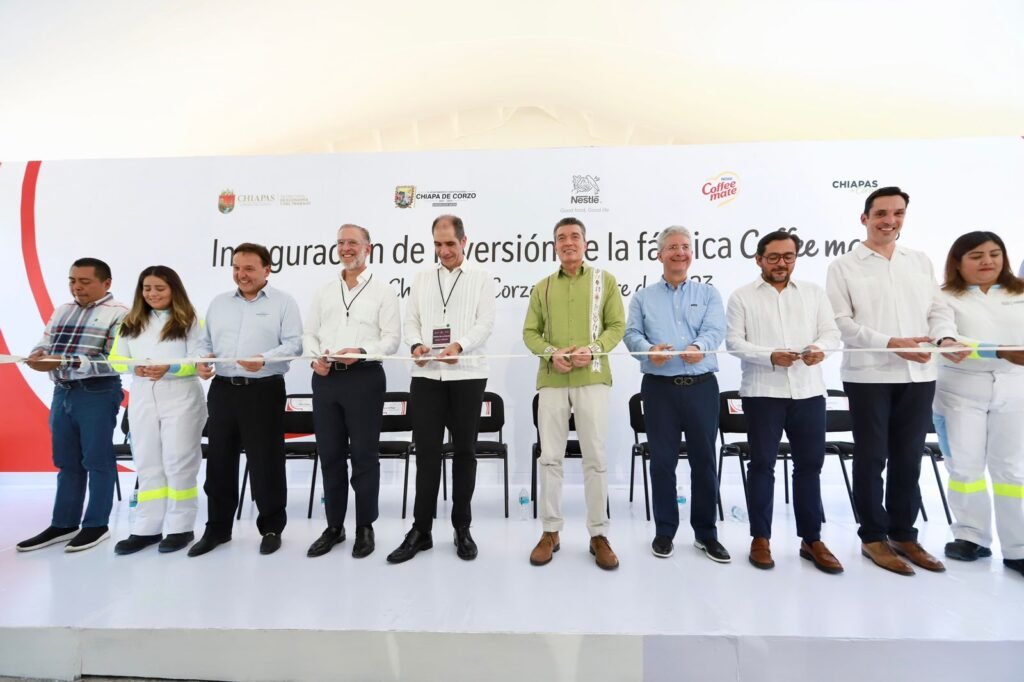 El gobernador Rutilio Escandón Cadenas y el presidente ejecutivo de Nestlé México, Fausto Costa, inauguraron la expansión de la Fábrica Coffee Mate Chiapas, ubicada en Chiapa de Corzo, la cual requirió una inversión de 300 millones de pesos para modernizar procesos e integrar tecnología de punta.