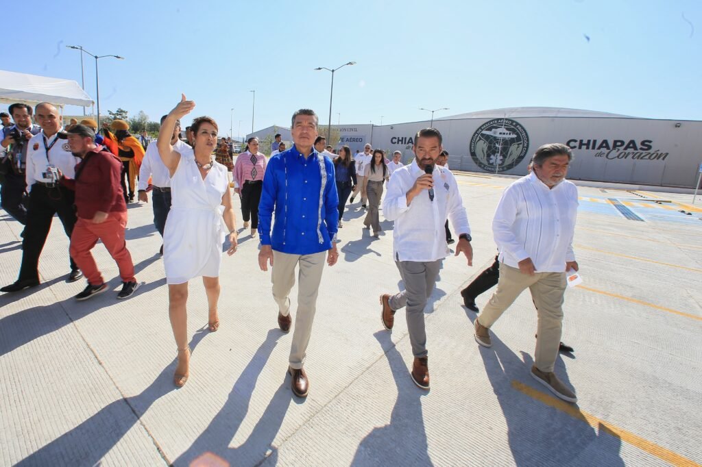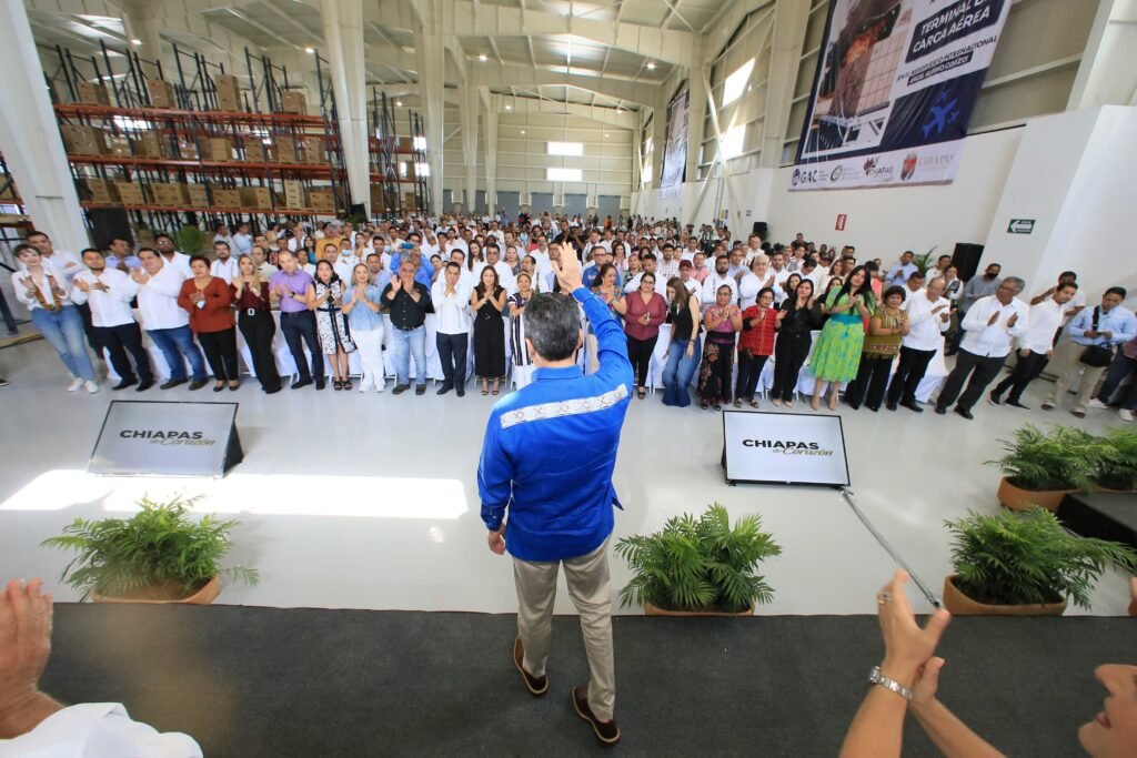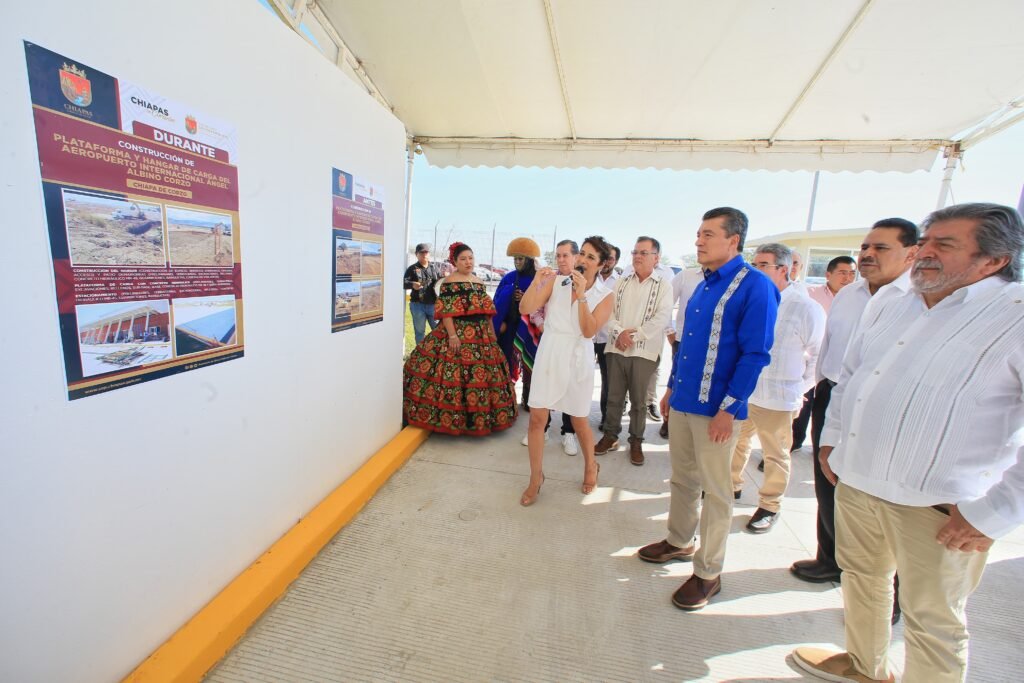 A un año de haber colocado la primera piedra de la obra, el gobernador Rutilio Escandón Cadenas inauguró la Plataforma y Hangar de Carga del Aeropuerto Internacional Ángel Albino Corzo, donde aseguró que esta infraestructura será un centro logístico y estratégico para distribuir la carga en el Sur Sureste del país, así como en Centroamérica, con quien México, a través de Guatemala, tiene un intercambio comercial de más de 5 mil millones de dólares.