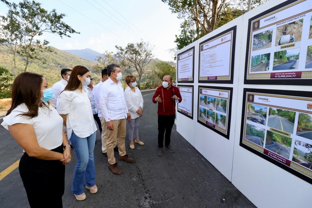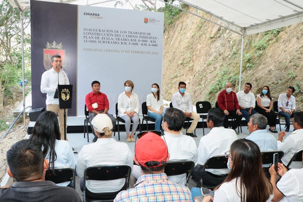Al inaugurar el camino Pijijiapan-Plan de Ayala, el gobernador Rutilio Escandón Cadenas señaló que las obras carreteras acercan a los pueblos, ayudan a mantener la convivencia y facilitan el traslado de personas y productos, lo cual coadyuva al desarrollo de las comunidades y municipios.