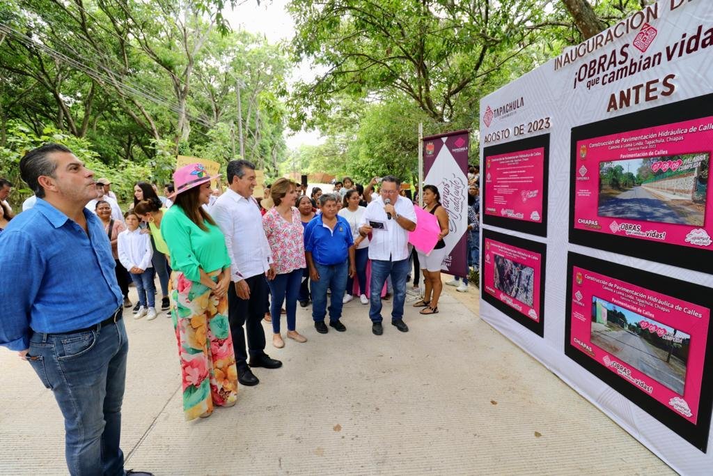 Por su parte, Rosy Urbina expuso que en Tapachula se trabaja con el ejemplo del presidente Andrés Manuel López Obrador y del gobernador Rutilio Escandón, por lo que esta obra hace justicia social y cambia vidas al fomentar el bienestar de las familias mediante un camino pavimentado, seguro y digno.