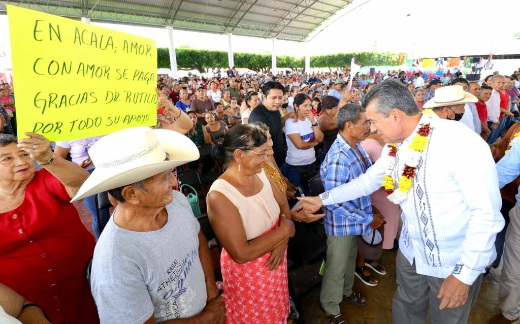 “Venimos a refrendar el compromiso de dar bienestar al pueblo de Acala, y quiero decirles que vamos a seguir invirtiendo, no vamos a fallarles, porque el presupuesto es para atender las necesidades del pueblo, y estoy muy contento de constatar el desarrollo de este bello municipio”, señaló.