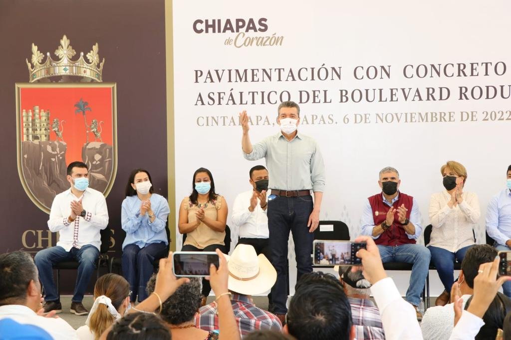 En este marco, el secretario de Obras Públicas, Ángel Torres Culebro, explicó que el proyecto de ampliación y pavimentación del Bulevar Rodulfo Figueroa se realizó con mano de obra y empresas chiapanecas. “Hoy el dinero alcanza porque se trabaja con responsabilidad y honestidad, bajo el liderazgo del gobernador Rutilio Escandón, quien contribuye en la consolidación de la Cuarta Transformación de la vida pública de México”.