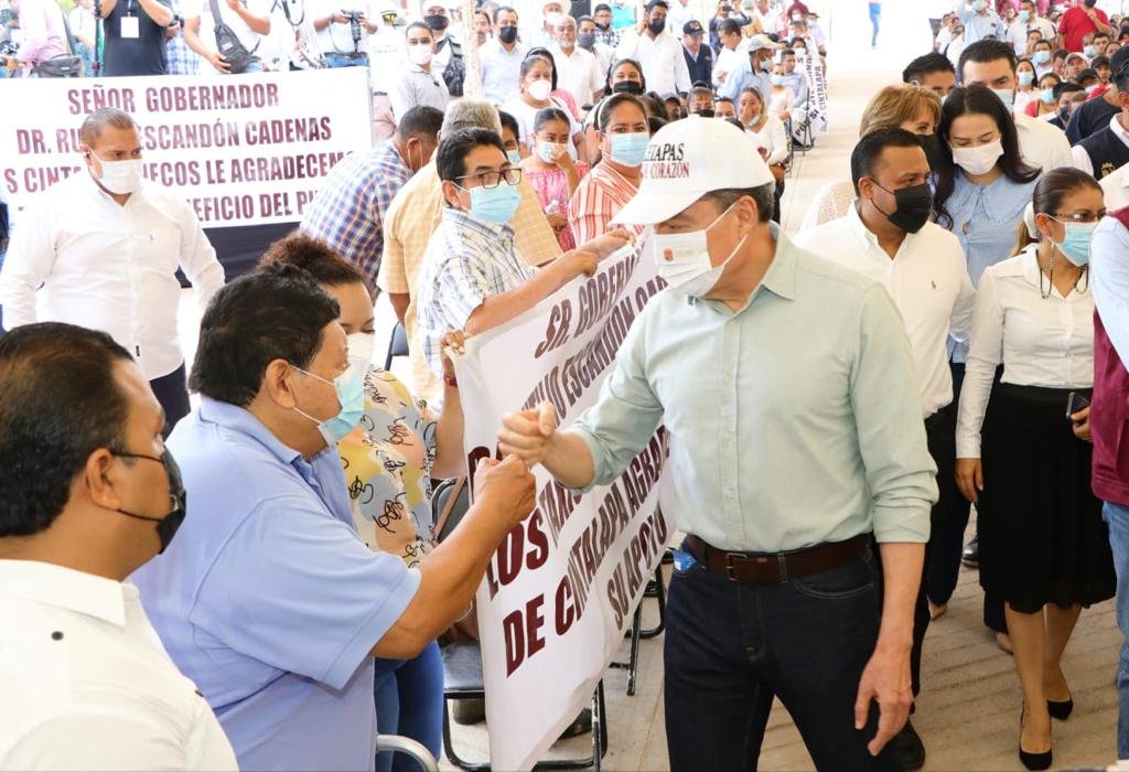 En el municipio de Cintalapa, el gobernador Rutilio Escandón Cadenas inauguró la pavimentación del Bulevar Rodulfo Figueroa, una obra que calificó como moderna, funcional y segura, que mejora la imagen urbana, el acceso vehicular y peatonal de quienes viven y visitan esta ciudad.